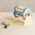 Your baby will rock and roll with our wooden Activity Roller. This perfect tummy time toy can either sit in the base and whirl and twirl or roll freely on the floor. This quality interactive toy features a shape sorter with heart, star and circle shapes and a functioning door that opens to store and retrieve shapes, 3 noisemaking knobs, 3 graphic abacus blocks, and an acrylic mirror. The sides of the cylinder boast floating discs enclosed in acrylic. Our Activity Roller will stimulate all the senses during playtime!