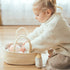 Play baby needs a special place to call their own. Our Doll Carrier is the perfect place for our Bundle Babies, or any other little baby doll. Our soft, woven cotton carrier comes with a plush bottle, blanket, pillow and mattress that matches the pretty patterned lining. Handles on each side will help your little one carry their little one. OH BABY!