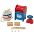 - Complete postal playset—5 wooden letters, 7 stamps, 2 packages, scale and slot-and-door mailbox fosters authentic role-play!