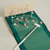 - Scenic practice green with etched mountain backboard and five flagged holes with printed scores for instant course setup.