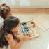 The Math Path has never been so easily paved, and is so much fun, kids won't even know they're learning! Our set comes loaded with 43 tiles that include numbers and equation signs, 44 color counting sticks, 64 color counting rings, a removable equation tray, and 4 ring stacking pegs. They all fit inside of our wooden storage box that closes with a sliding cover. From the very young to older children, The Math Path helps teach equations, counting, color matching, and more. Get on the right path!