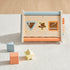 - Three-sided activity hub with abacus, shape sorter, character maze, gears & a mirror-door.